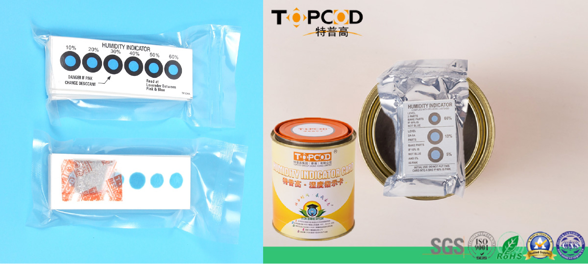 আর্দ্রতা নির্দেশক কার্ডগুলি আপেক্ষিক আর্দ্রতার মাত্রা নিরীক্ষণ করার জন্য ডিজাইন করা ছোট কাগজের যন্ত্র।অসংখ্য কনফিগারেশনে উপলব্ধ, কার্ডগুলি আবেদন এবং প্রয়োজনের উপর নির্ভর করে আপেক্ষিক আর্দ্রতা কম 5 শতাংশ এবং সর্বোচ্চ 95 শতাংশ নির্দেশ করে৷ দুটি প্রধান ধরনের আর্দ্রতা নির্দেশক কার্ড রয়েছে: বিপরীত এবং অপরিবর্তনীয়।বিপরীতমুখী আর্দ্রতা নির্দেশক কার্ডগুলি অনেকটা থার্মোমিটারের মতো কাজ করে, বর্তমান আপেক্ষিক আর্দ্রতার মাত্রা নির্দেশ করতে ওঠানামা করে।সর্বোচ্চ, বা অপরিবর্তনীয় কার্ডগুলি সর্বোচ্চ আপেক্ষিক আর্দ্রতার মাত্রা নির্দেশ করার জন্য ডিজাইন করা হয়েছে যেখানে পণ্যগুলি উন্মুক্ত করা হয়েছে।